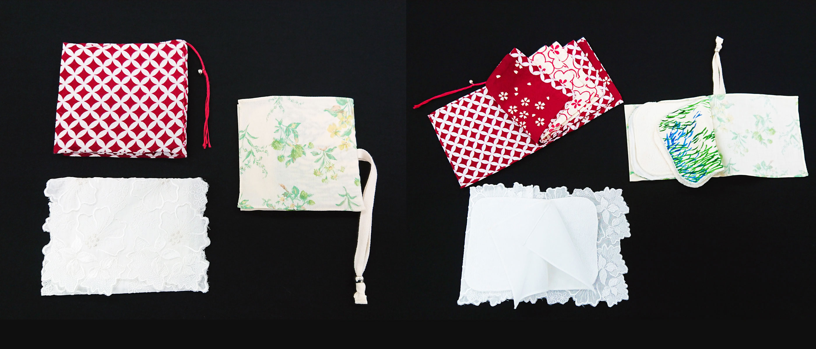 いろいろなタイプの吸水性のある生地をレイヤードに重ねることにより、指の感触だけでもきれいなハンカチを探せます。 視覚障がい者も健常者も常にきれいなハンカチが使えます。 ご要望に合わせてアレンジ出来ます。気軽にお問合せ下さい。 >>お問い合わせはこちらから