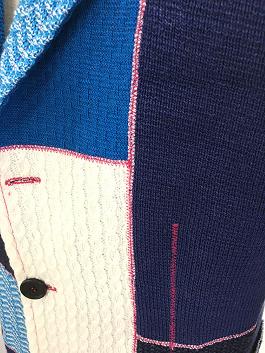 ◆TPS縫製によるジャケット ・2枚の生地を突き合わせて縫う。完全に縫い代ゼロの縫製 ・パッチワークが可能 ・リバーシブル縫製可能 ・縫製工賃・・特許がある ・素材によって可能、不可がある。必ず一度試し縫い ・布帛等ほつれやすい素材にはメローミシン後かける(画像) ◆FOB価格 工賃45,000円+素材代